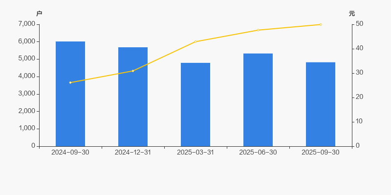 2024年9月30日至今,公司股东户数显著下降,区间跌幅为19.84%。2024年9月30日至2025年9月30日区间股价上涨91.19%。