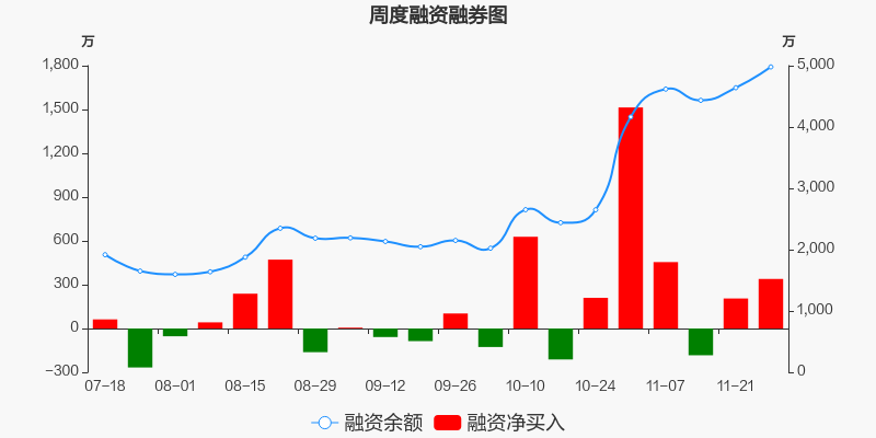 理工导航本周(2025/11/24-2025/11/28)累计涨幅达15.97%,截至11月28日最新股价报收55.13元。从增量上来看,11月24日至11月28日融资买入交易规模2622.04万元,融资偿还规模2282.72万元,期内融资净买入339.32万元。从存量上来看,截止11月30日,理工导航融资融券余额4980.16万元,其中融资余额规模4980.16万元,融券余额规模0元。