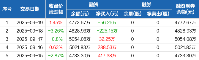 坤恒顺维:融资净偿还56.26万元,融资余额4772.67万元(09-19)