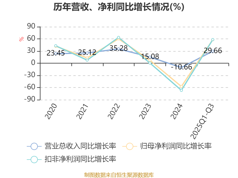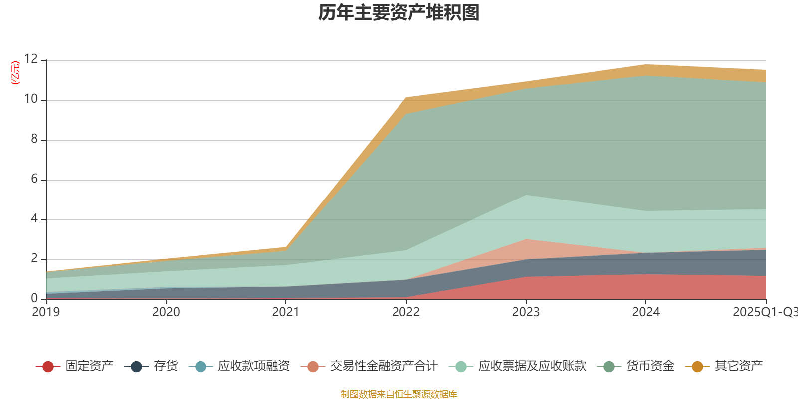 资产重大变化方面,截至2025年三季度末,公司货币资金较上年末减少6.27%,占公司总资产比重下降2.3个百分点;存货较上年末增加21.41%,占公司总资产比重上升2.21个百分点;应收票据及应收账款较上年末减少7.88%,占公司总资产比重下降1个百分点;交易性金融资产合计占公司总资产的0.92%,上年末为0。