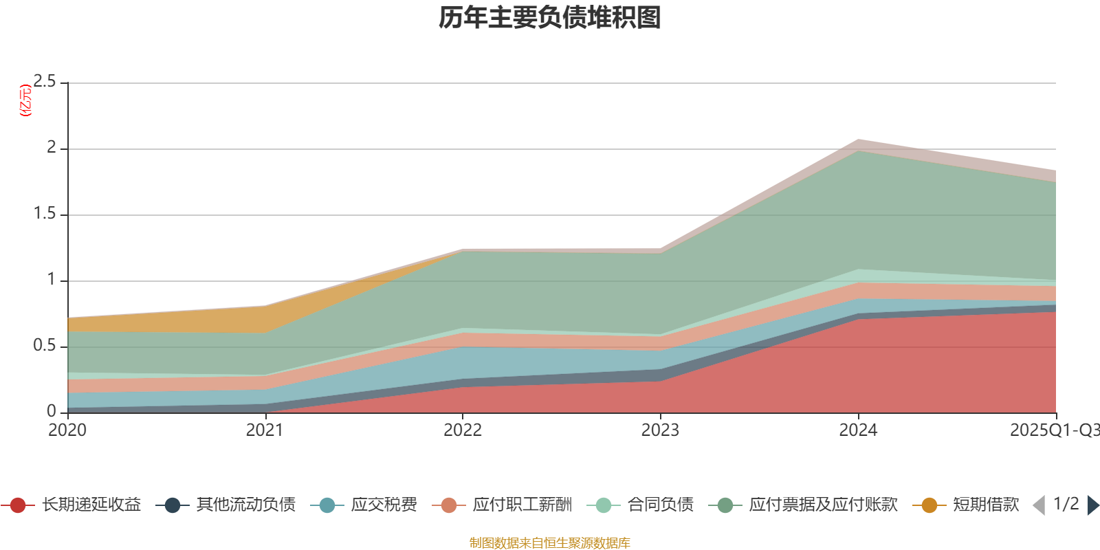 负债重大变化方面,截至2025年三季度末,公司应付票据及应付账款较上年末减少17.46%,占公司总资产比重下降1.18个百分点;应交税费较上年末减少74.87%,占公司总资产比重下降0.71个百分点;长期递延收益较上年末增加7.94%,占公司总资产比重上升0.63个百分点;合同负债较上年末减少54.71%,占公司总资产比重下降0.46个百分点。