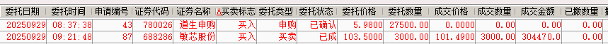 上周末2天,一门专心研究敏芯股份,昨晚就作好今天买 入的计划。在集合竞价时直接挂了103.5元(原计划是只要小于105元就挂),没想到开盘价为101.5元,主力直接给我发了2元一股的红包,谢谢