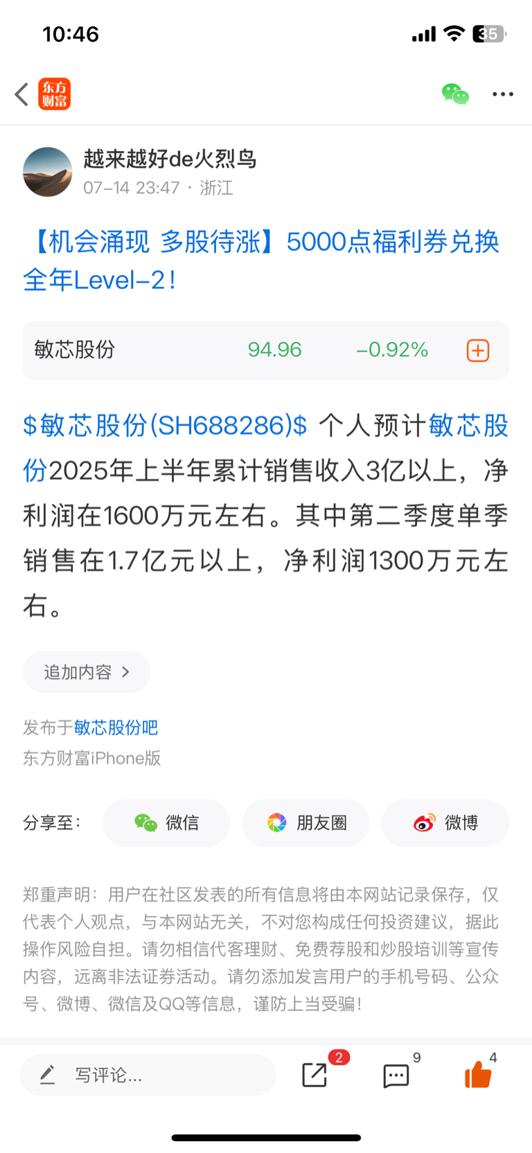温馨提示: 1.根据《证券法》规定,禁止编造、传播虚假信息或者误导性信息,扰乱证券市场;2.用户在本社区发表的所有资料、言论等仅代表个人观点,与本网站立场无关,不对您构成任何投资建议。用户应基于自己的独立判断,自行决定证券投资并承担相应风险。《东方财富社区管理规定》