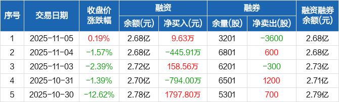 敏芯股份:融资净买入9.63万元,融资余额2.68亿元(11-05)