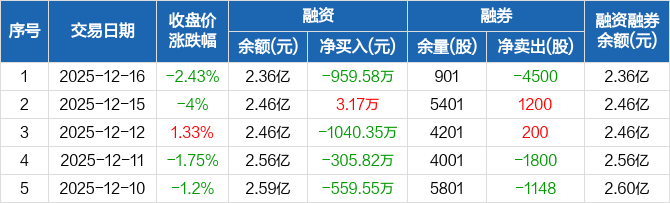 敏芯股份:融资净偿还959.58万元,融资余额2.36亿元(12-16)