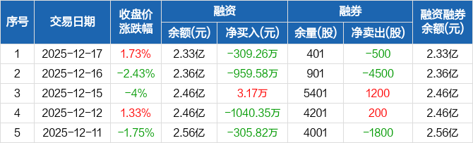 敏芯股份:融资净偿还309.26万元,融资余额2.33亿元(12-17)