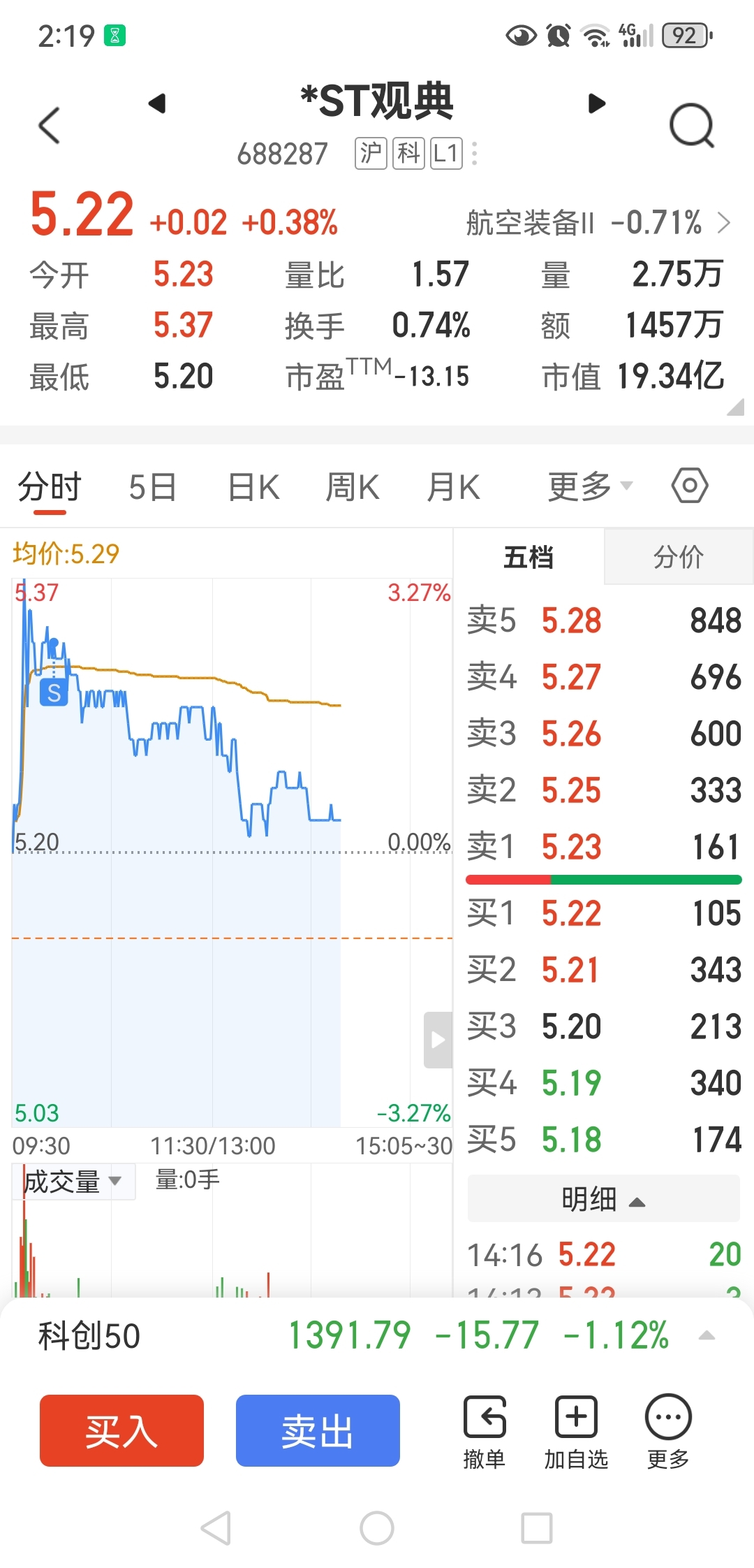 $*ST观典(SH688287)$ 被逼无奈,唉!走了