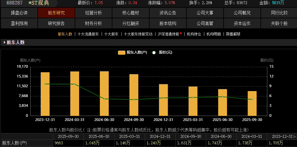 这个股票散户极少了!1、股东人数目前8000左右,持续大幅减少;2、买卖盘价格不连续有时差价较大;3、成交很不活跃,常常好几分钟不成交;4、总换手率低,庄家筹码锁定坚决;上海著名投资ST股票的“投手虎”极度看好,该股必有大题材、大行情!
