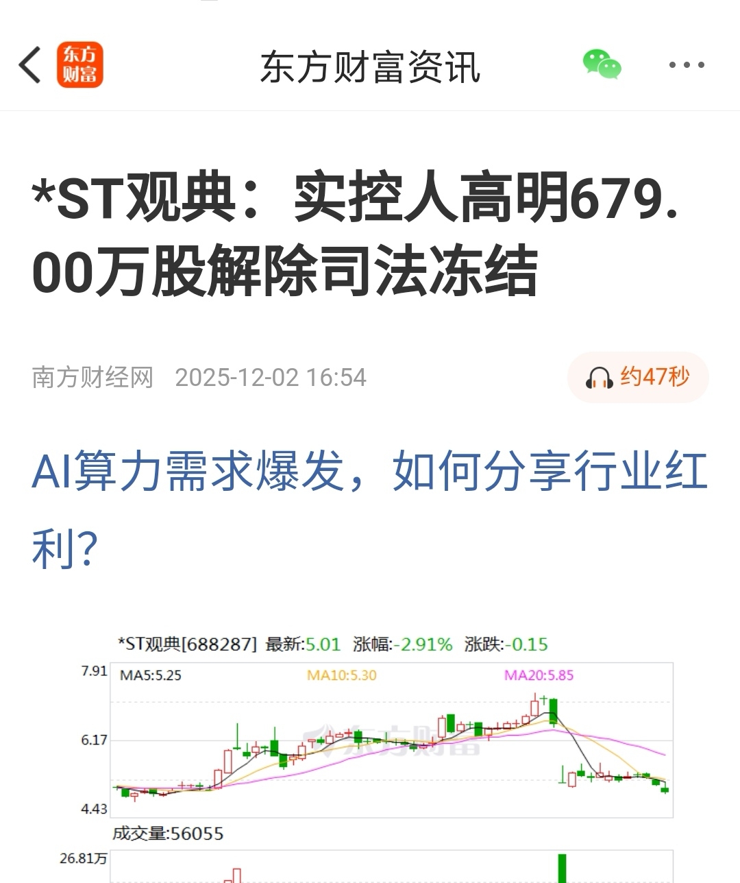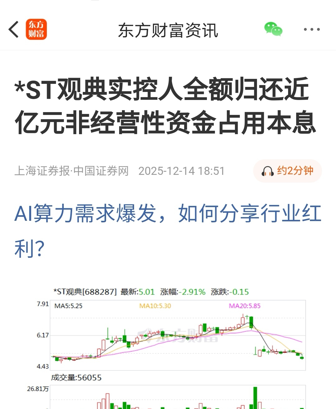 摘帽已经铁板钉钉,12月已经全部归还占用资金,这是天大的利好,实控人解除冻结,又是大利好,营收1亿即可摘帽,年报预告营收1.23亿,妥妥的摘帽股,而且是科创板摘帽最小市值,商业航天,军工装备,无人机,低空经济概念都是热门概念,如果不摘帽根本就不会归还占用资金,很多退是的都是不归还占用资金导致的,观典12月归还占用资金就是为了摘帽,这都不懂还玩ST?这个市值有多少我吃多少。