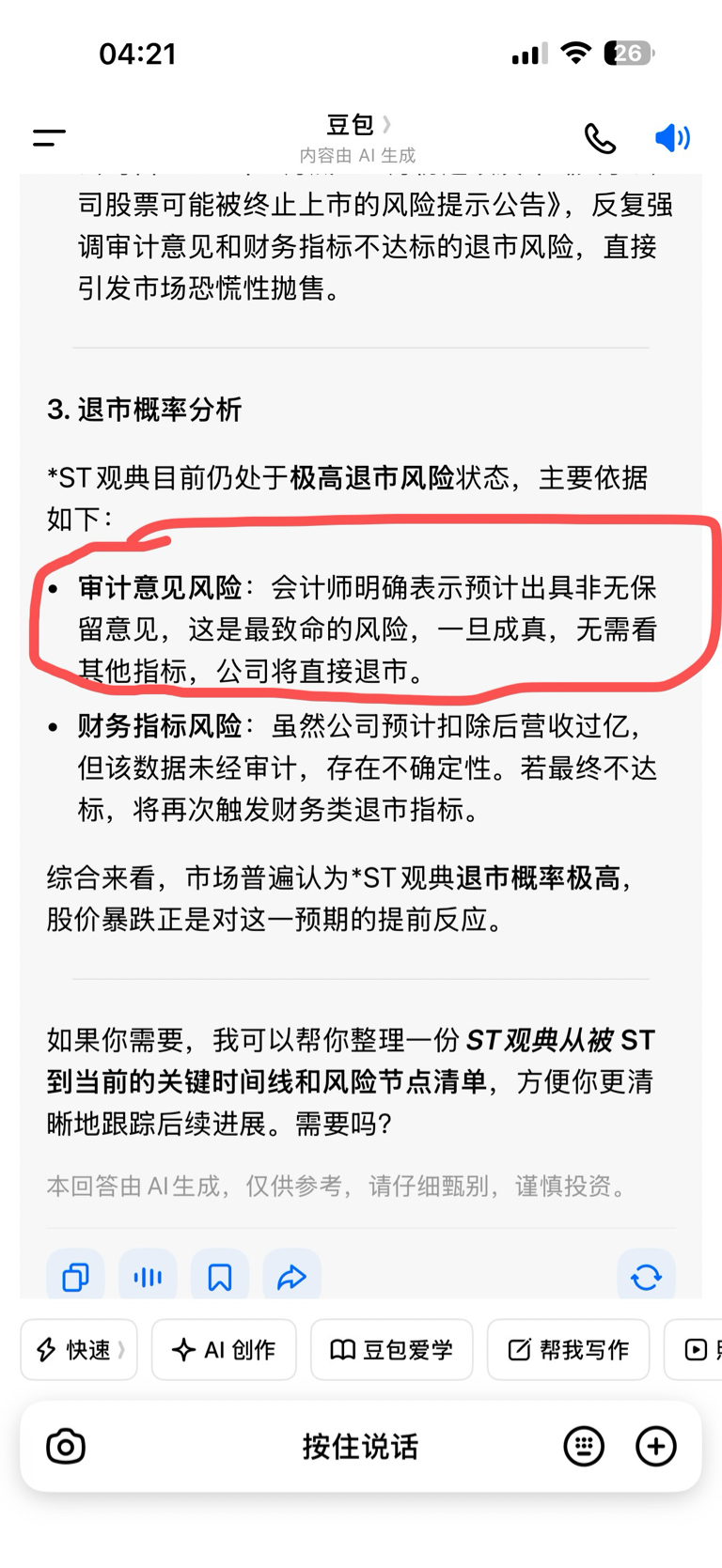 $*ST观典(SH688287)$ 会计事务所就差明说了要给非标,还要装作看不见。被一群拖牵着鼻子走
