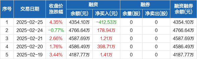 鸿泉物联:融资净偿还412.53万元,融资余额4354.1万元(02-25)