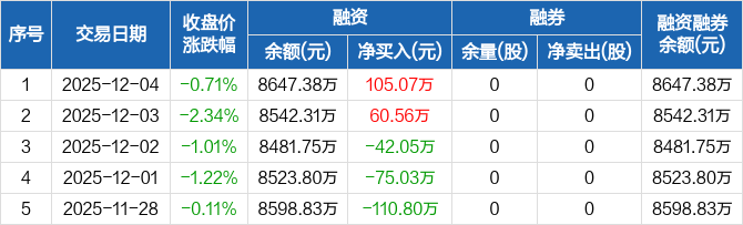 鸿泉技术:融资净买入105.07万元,融资余额8647.38万元(12-04)