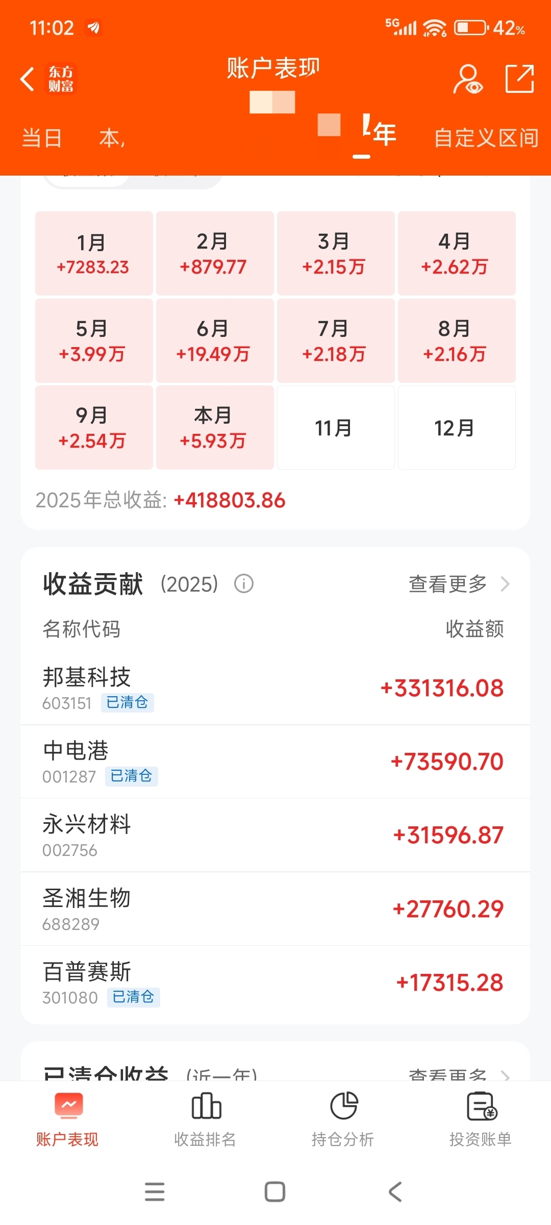 $圣湘生物(SH688289)$ 大盘指数已经过了4000点了,该赚钱的都赚钱了,没赚钱的就很难赚钱的。晒一下图就是今年的收益,是为了做个记录证明一下,今年的确还行,月月都是红的。祝所有的股友早日解套都能赚钱。