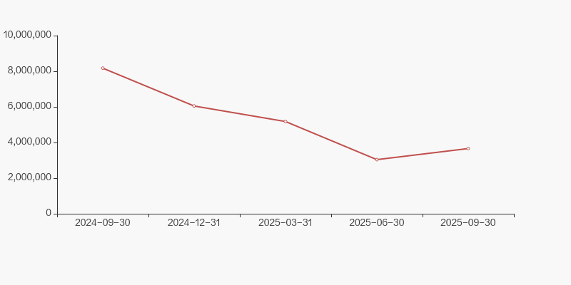 自2024年9月30日以来,公司股东户数连续4期上涨,截至目前增幅为9.07%。2024年9月30日至2025年9月30日区间股价上涨1.11%。