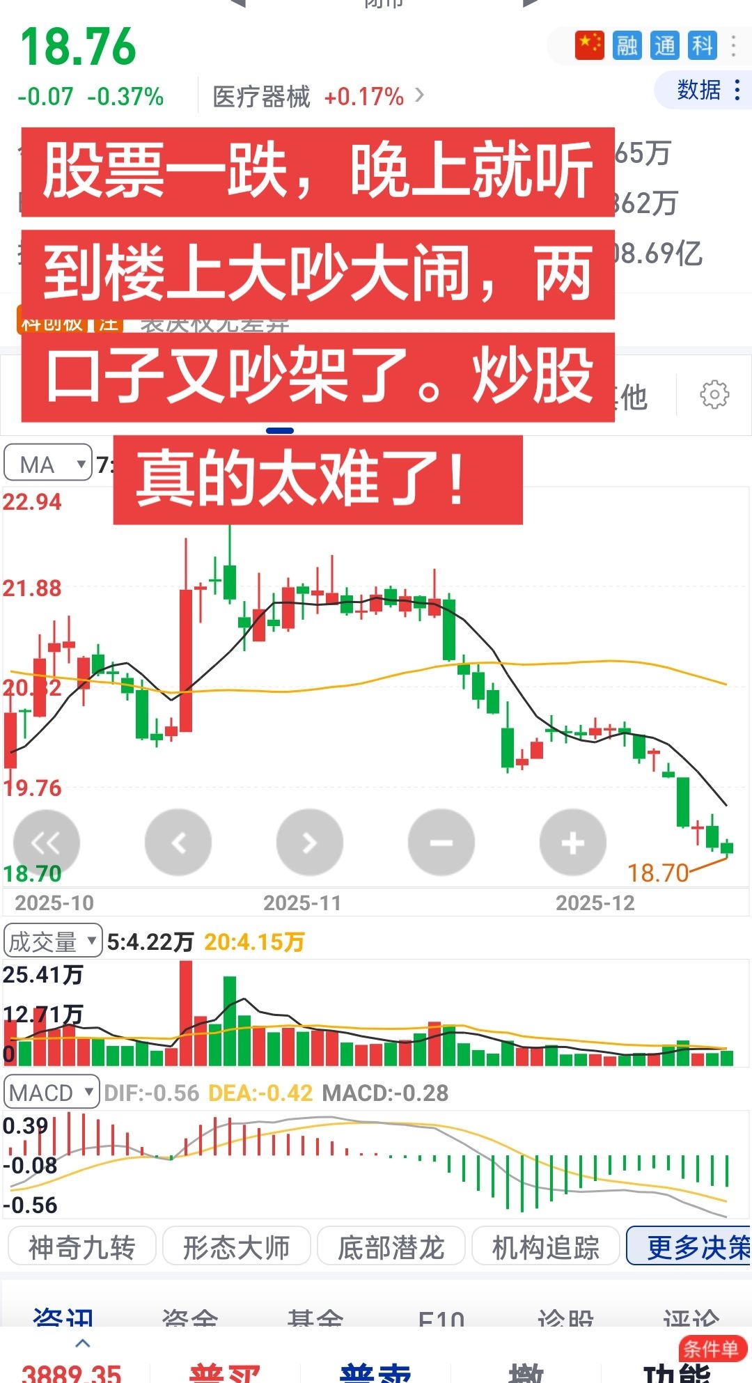 圣湘生物一跌,晚上就听到楼上大吵大闹,两口子又吵架了,已经一个多月了,圣湘生物真