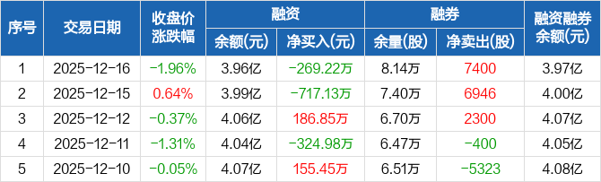 圣湘生物:融资净偿还269.22万元,融资余额3.96亿元(12-16)