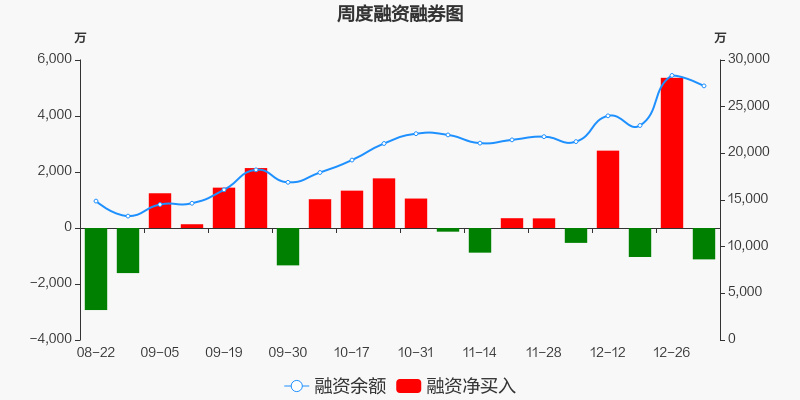 景业智能本周(2025/12/29-2025/12/31)累计跌幅达3.13%,截至12月31日最新股价报收59.44元。从增量上来看,12月29日至12月31日融资买入交易规模5530.88万元,融资偿还规模6651.14万元,期内融资净偿还1120.26万元。从存量上来看,截止1月4日,景业智能融资融券余额2.73亿元,其中融资余额规模2.72亿元,融券余额规模27.34万元。