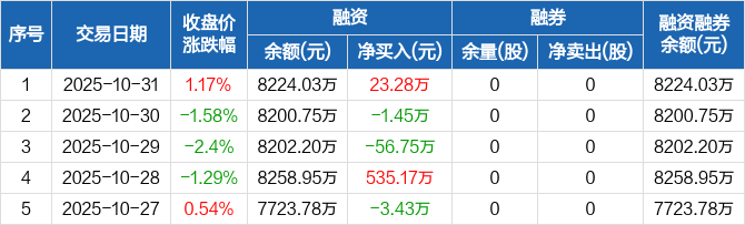 金橙子:融资净买入23.28万元,融资余额8224.03万元(10-31)