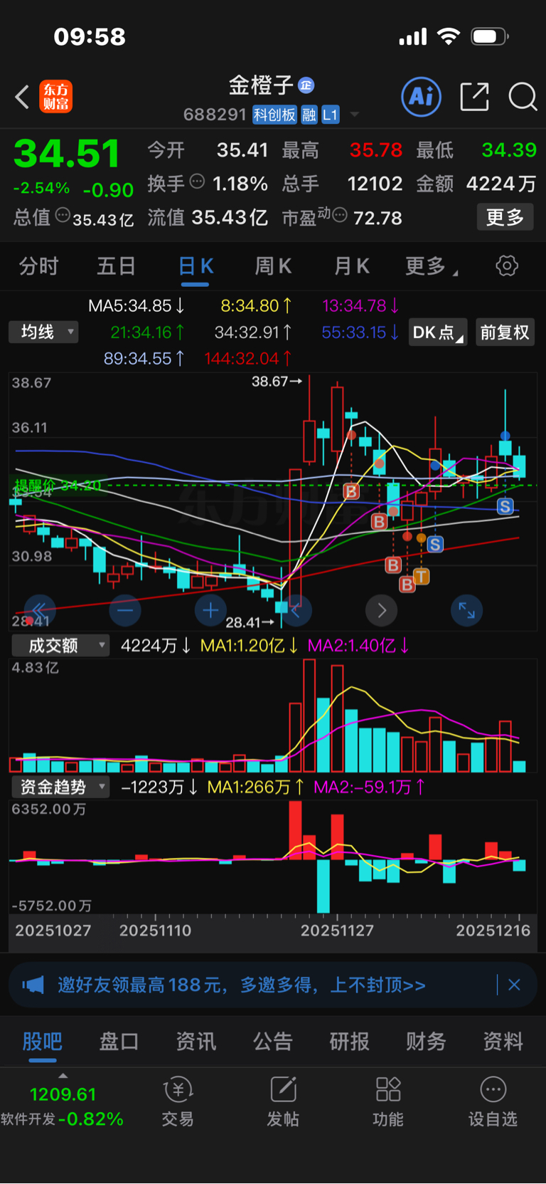 $金橙子(SH688291)$ 幸亏昨天清仓了,