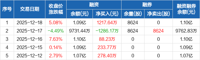 金橙子:融资净买入1217.64万元,融资余额1.09亿元(12-18)