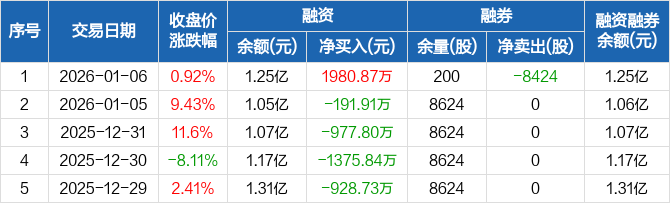 金橙子:融资净买入1980.87万元,融资余额1.25亿元(01-06)
