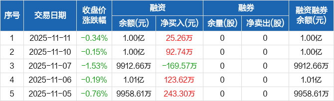 浩瀚深度:融资净买入25.26万元,融资余额1亿元(11-11)
