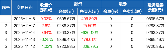 浩瀚深度:融资净买入406.8万元,融资余额9695.67万元(11-18)