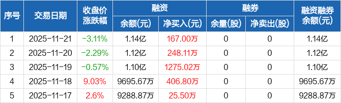 浩瀚深度:连续5日融资净买入累计2122.42万元(11-21)