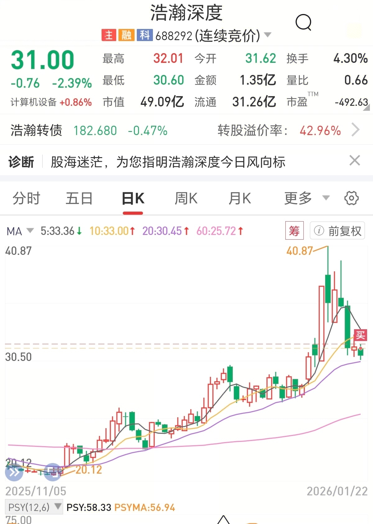 $浩瀚深度(SH688292)$ 买定离手40之前不想再看你一眼…只知今朝上车日,不知下车是何时?