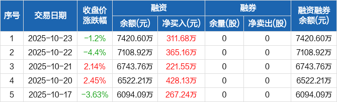 奥浦迈:连续6日融资净买入累计1611.58万元(10-23)