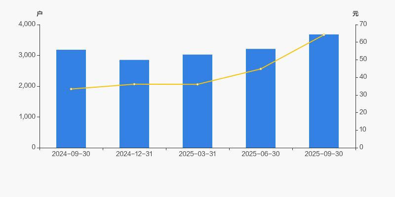 自2024年12月31日以来,公司股东户数连续3期上涨,截至目前增幅为29.01%。2024年12月31日至2025年9月30日区间股价上涨77.68%。