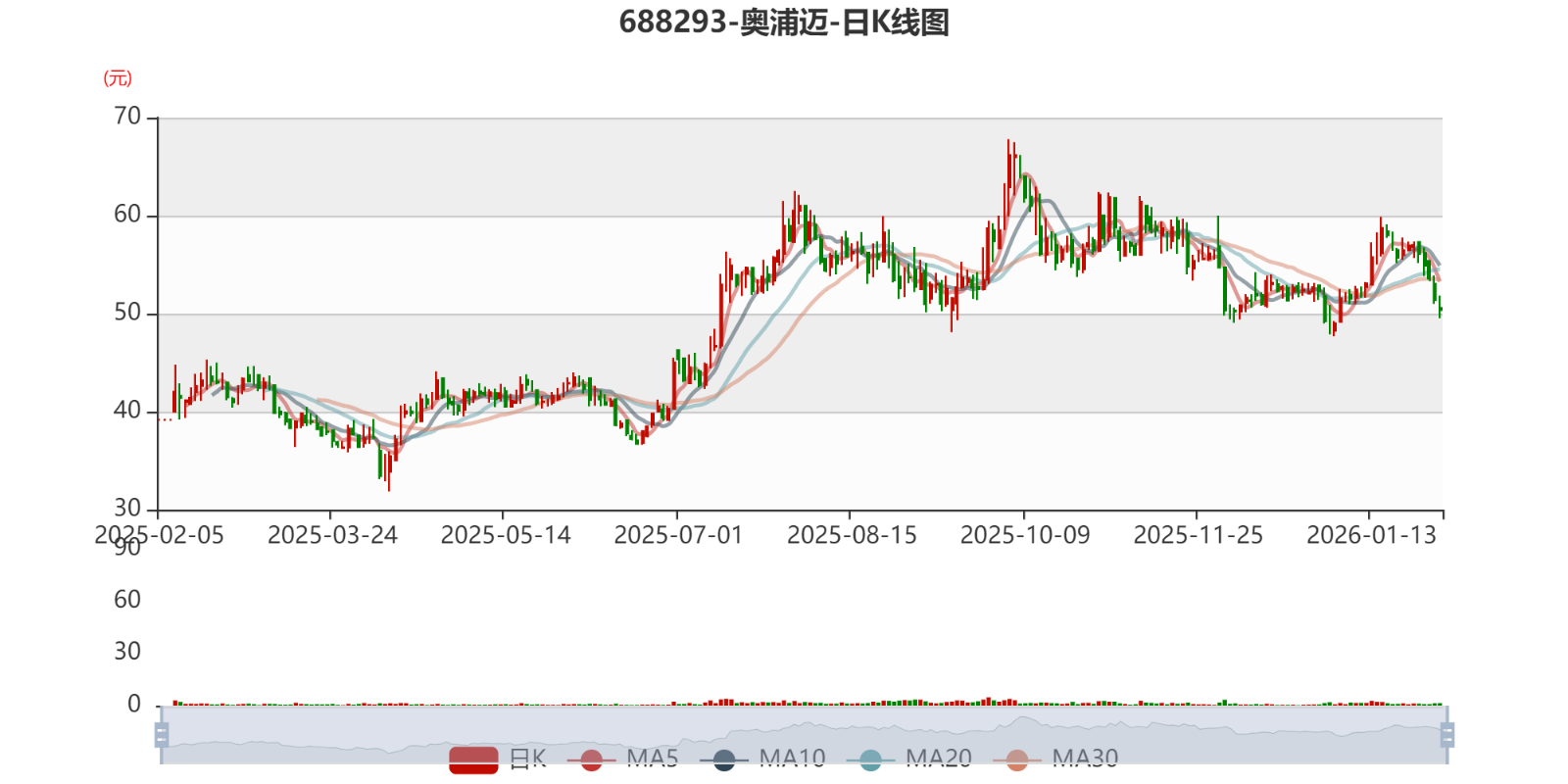 中证智能财讯奥浦迈(688293)1月30日晚间披露2025年度业绩预告,预计2025年实现营业收入3.55亿元,同比增长19.43%;归母净利润4200万元,同比增长99.5%;扣非净利润预计2100万元,同比增长218.86%。以1月30日收盘价计算,奥浦迈目前市盈率(TTM)约为136.53倍,市净率(LF)约2.72倍,市销率(TTM)约16.15倍。