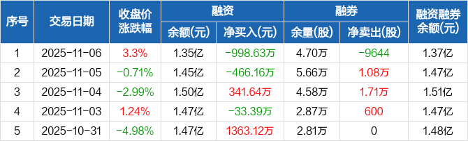 中复神鹰:融资净偿还998.63万元,融资余额1.35亿元(11-06)