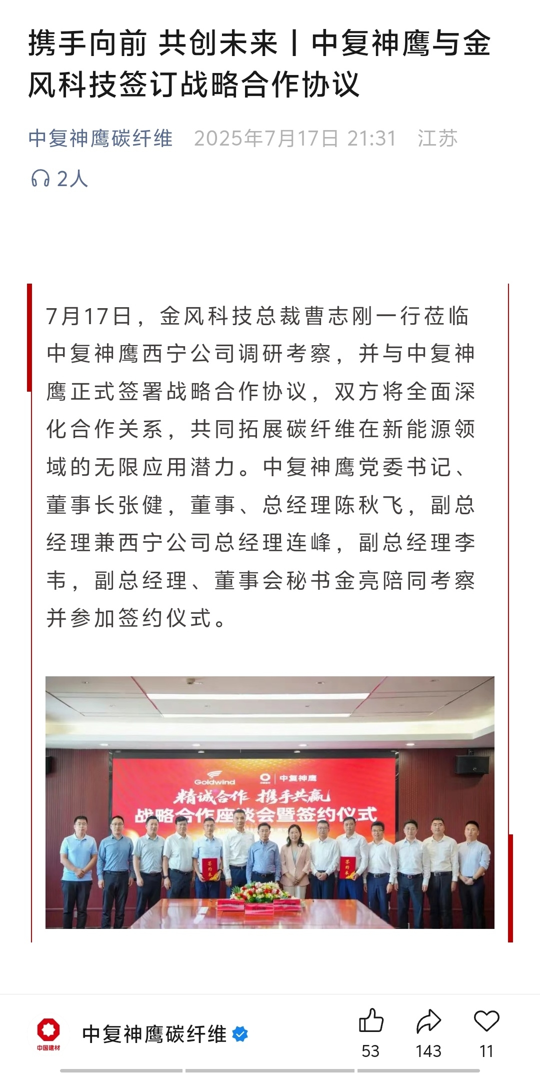 金风科技都涨疯了,中复神鹰这战略伙伴应该也要表现表现了。
