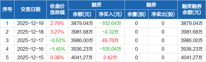 和达科技:融资净偿还102.64万元,融资余额3879.04万元(12-19)