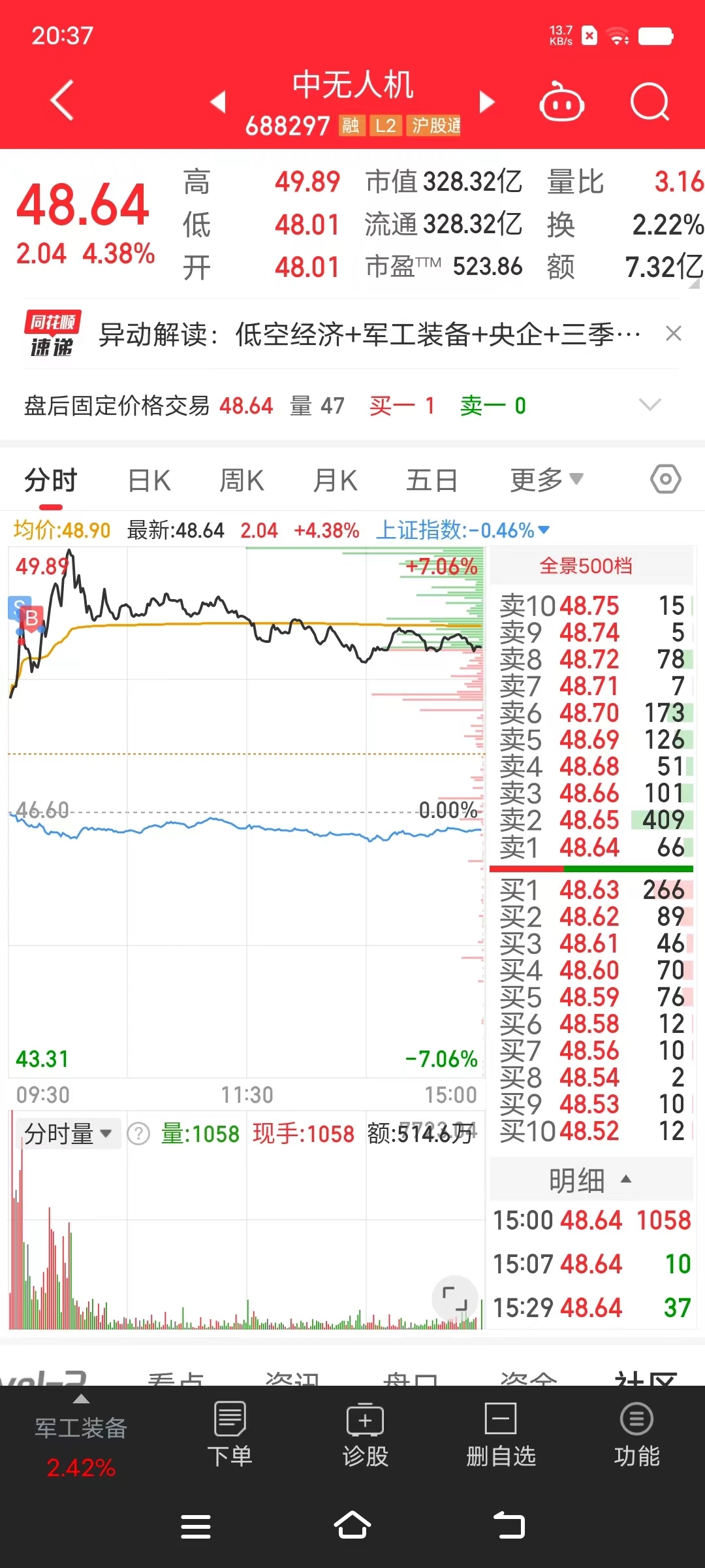 中无人机盈利了这是第四次我是9月3号上午关注9月4号第一次开仓这次大概率明天早上