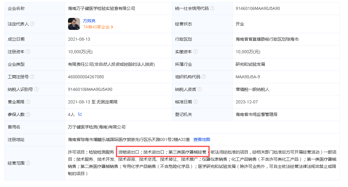 旗下的海南万子健医学检验实验室,正宗的海南自贸概念,必将起飞