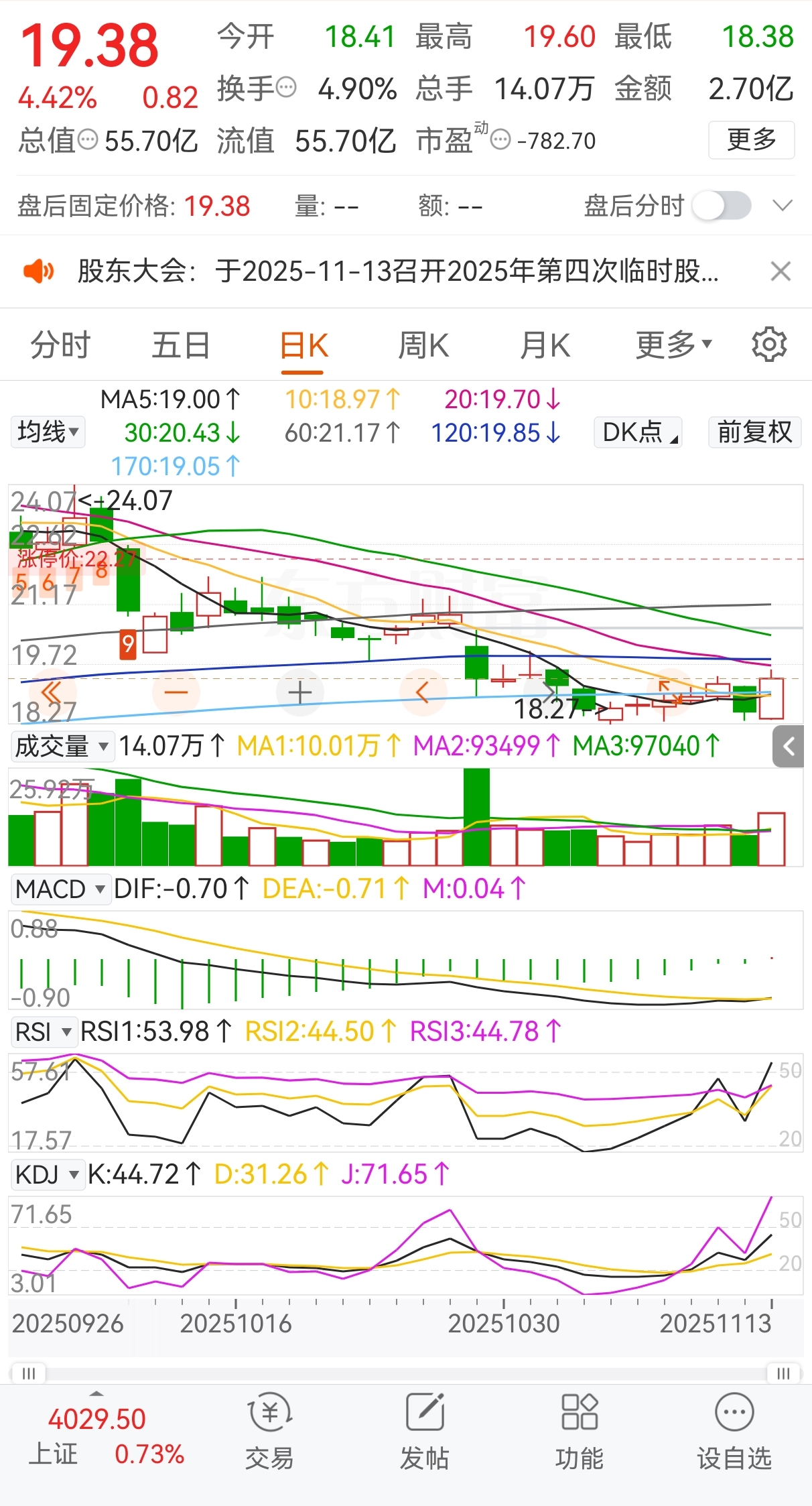明天(20251114)必涨,MACD金叉及RSI都指向上涨