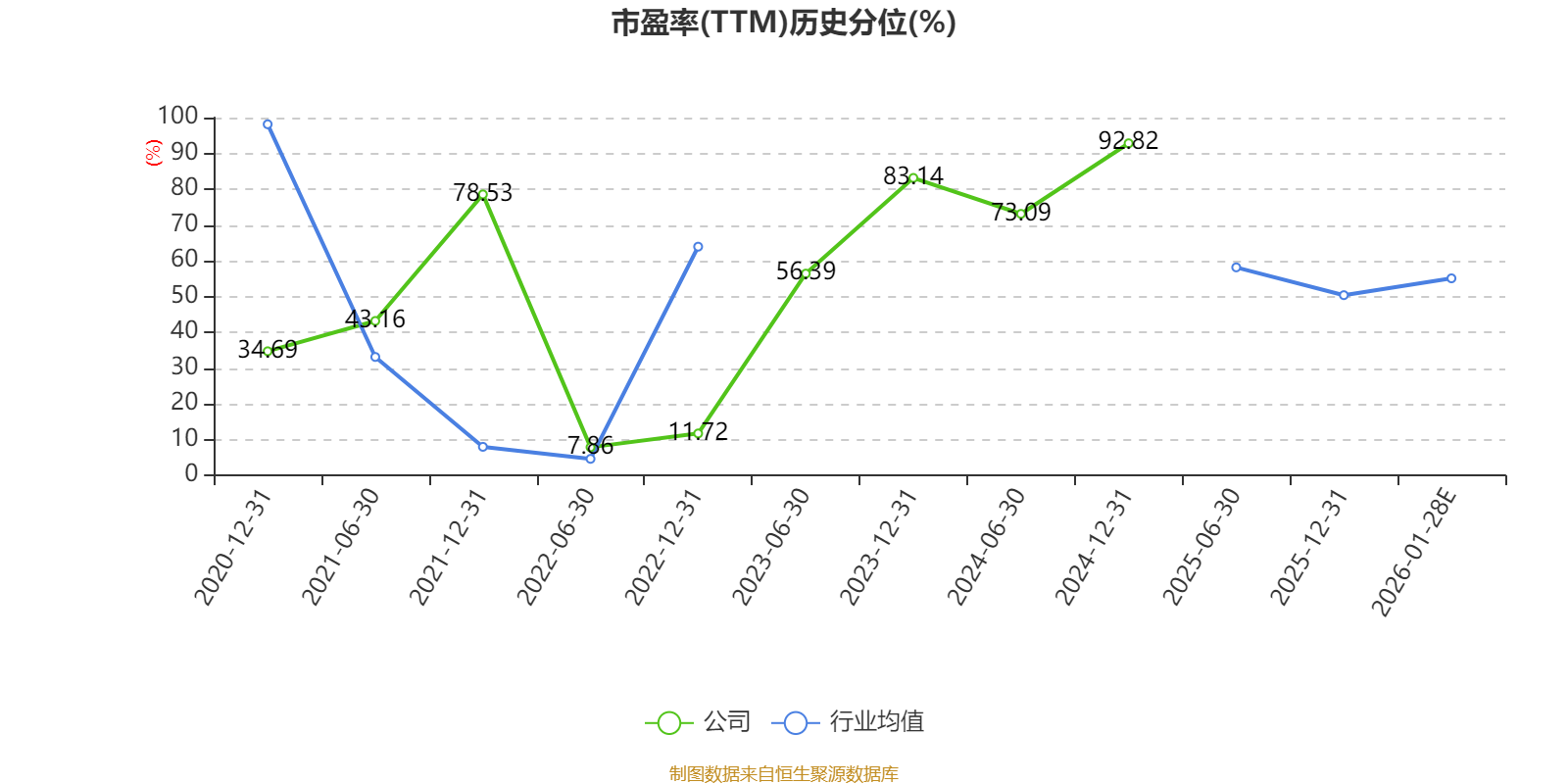 以本次披露业绩预告均值计算,公司近年市盈率(TTM)图如下所示: