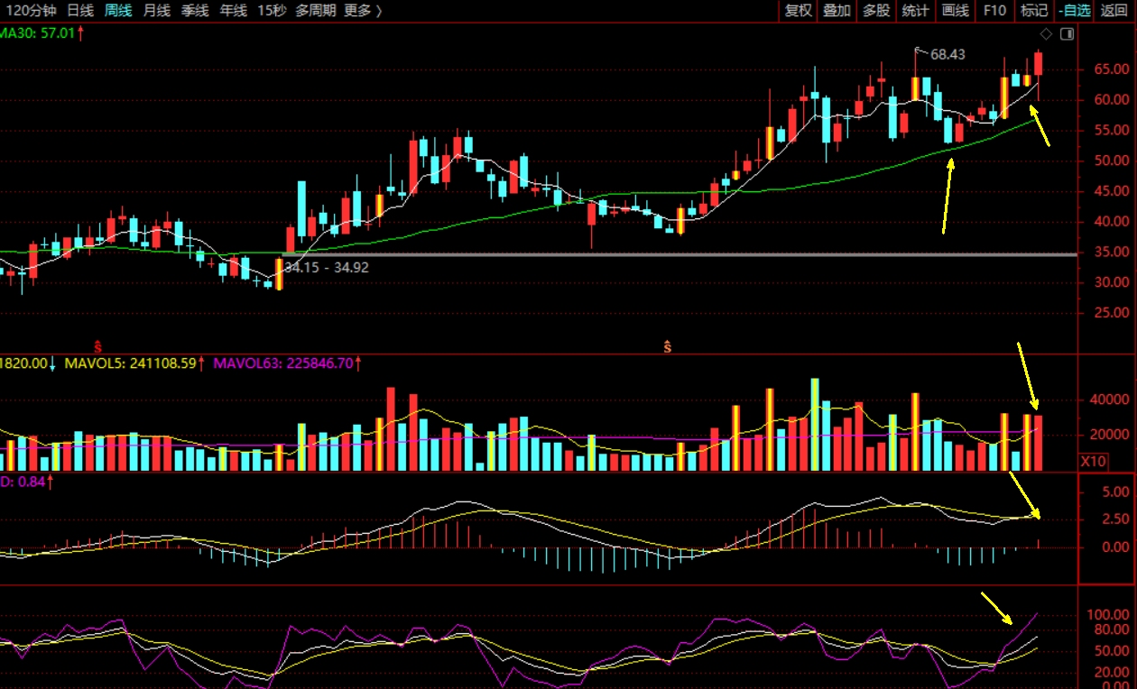 周线和日线回踩30周线附近,均线多头排列指标金叉,是否有可能日线参考周线结构回踩5日线给上车机会