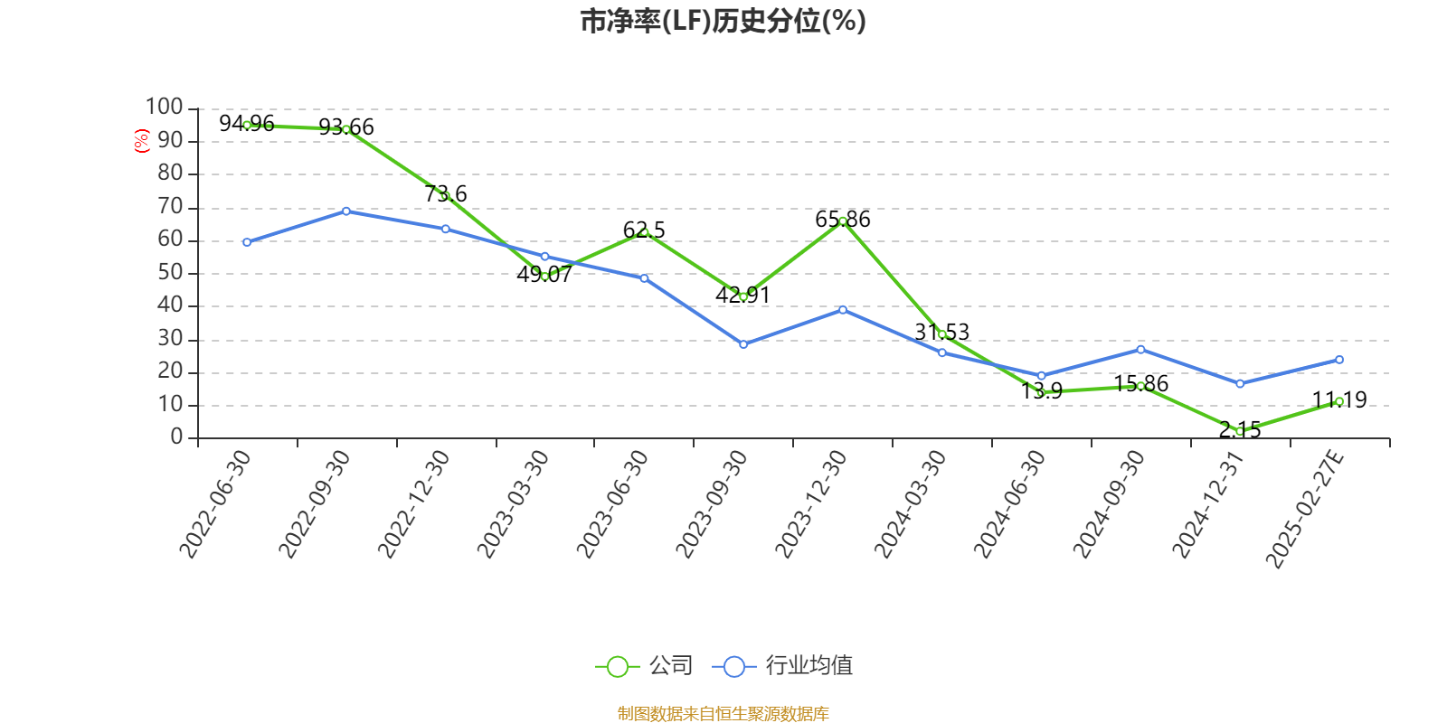 市盈率、市净率为负时,不显示当期分位数,会导致折线图中断。