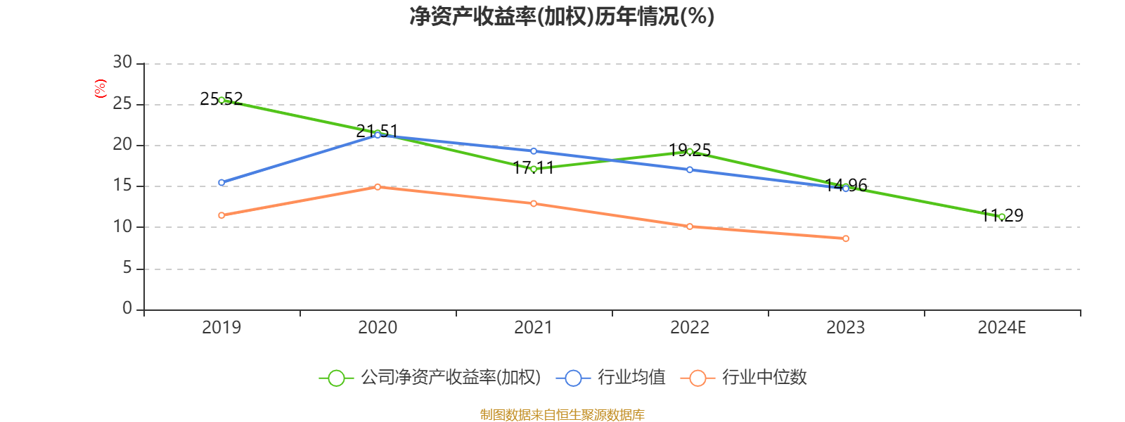 数据显示,2024年公司加权平均净资产收益率为11.29%,较上年同期下降3.67个百分点。