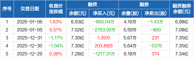 奕瑞科技:融资净偿还856.04万元,融资余额6.93亿元(01-06)