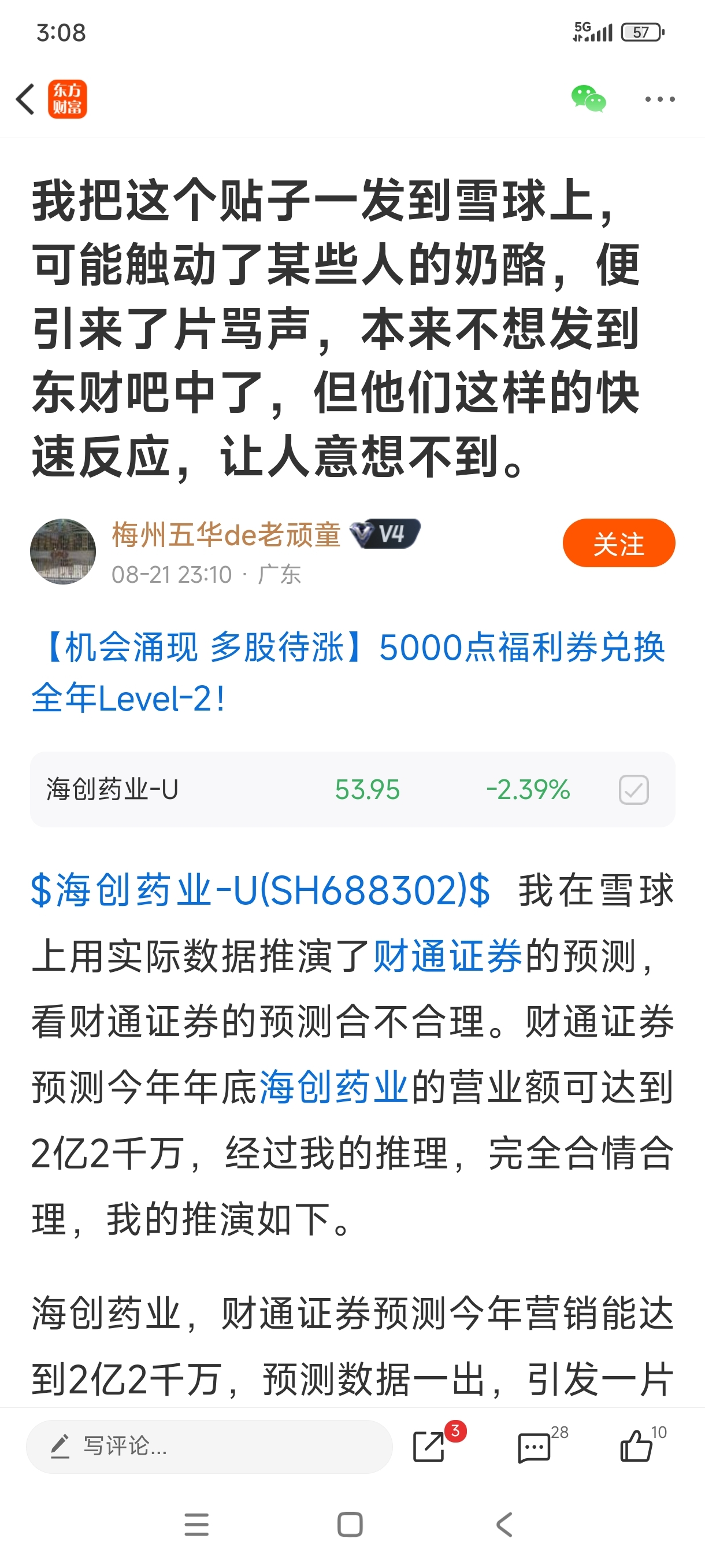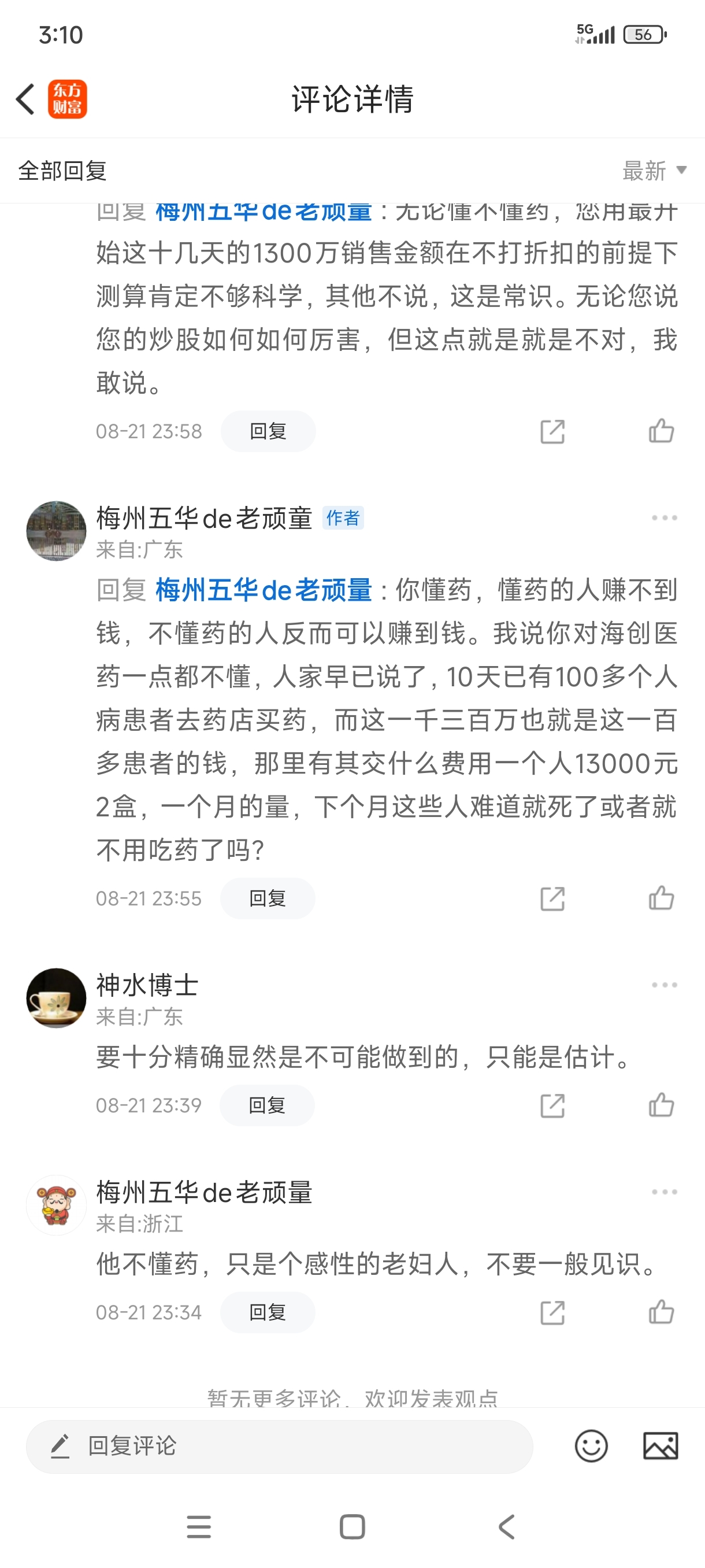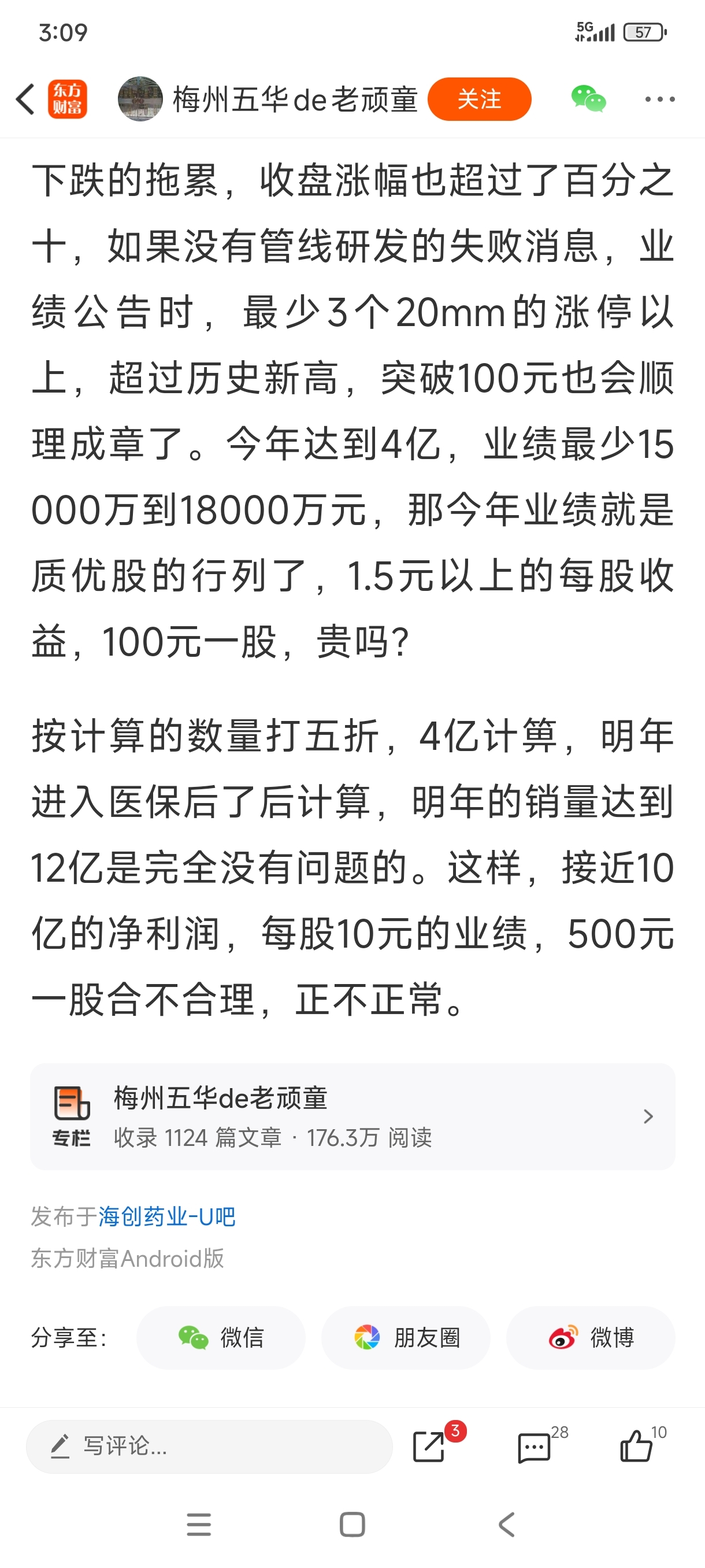 $海创药业-U(SH688302)$ 我已经截图保存,梅州五华老顽童它这个托已经无脑唱多几年了,海创药业不仅没怎么涨,只是创新药大盘在涨,在A股和港股创新药里面涨幅倒数。但梅州它自己说自己不懂药,但是忽悠别人说海创药业今年业绩能到8亿元销售额,看下面图片它的无脑推算,然后还说就算打对折也要有4亿销售额,最最最保守4亿不可能再少了。
