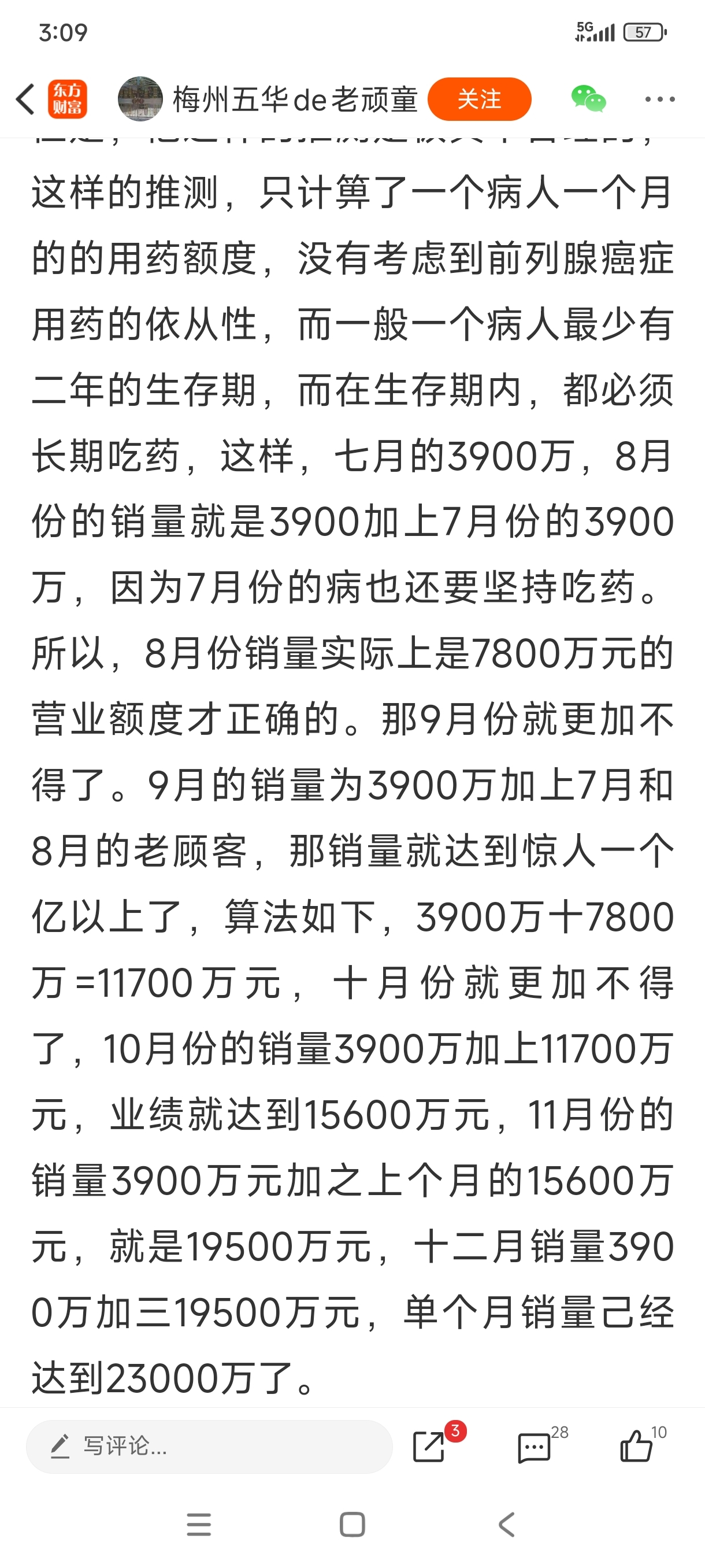 我只说一句,海创药业1119今年的销售保证不会超过1.5亿,大概率在5000-8000万左右。