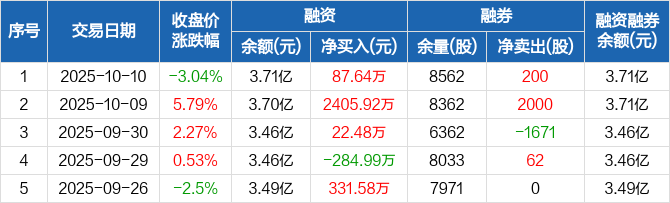 科德数控:融资余额3.71亿元,创历史新高(10-10)