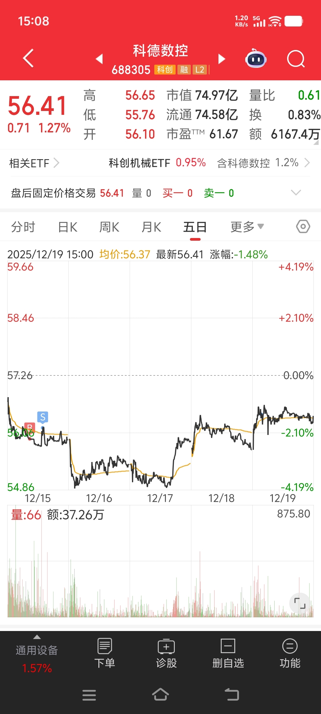 科德数控这次弄得不行需要资金买别的只能先抛一下了