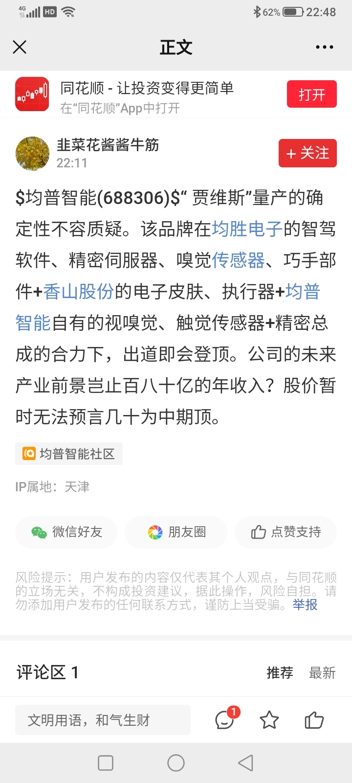 温馨提示: 1.根据《证券法》规定,禁止编造、传播虚假信息或者误导性信息,扰乱证券市场;2.用户在本社区发表的所有资料、言论等仅代表个人观点,与本网站立场无关,不对您构成任何投资建议。用户应基于自己的独立判断,自行决定证券投资并承担相应风险。《东方财富社区管理规定》
