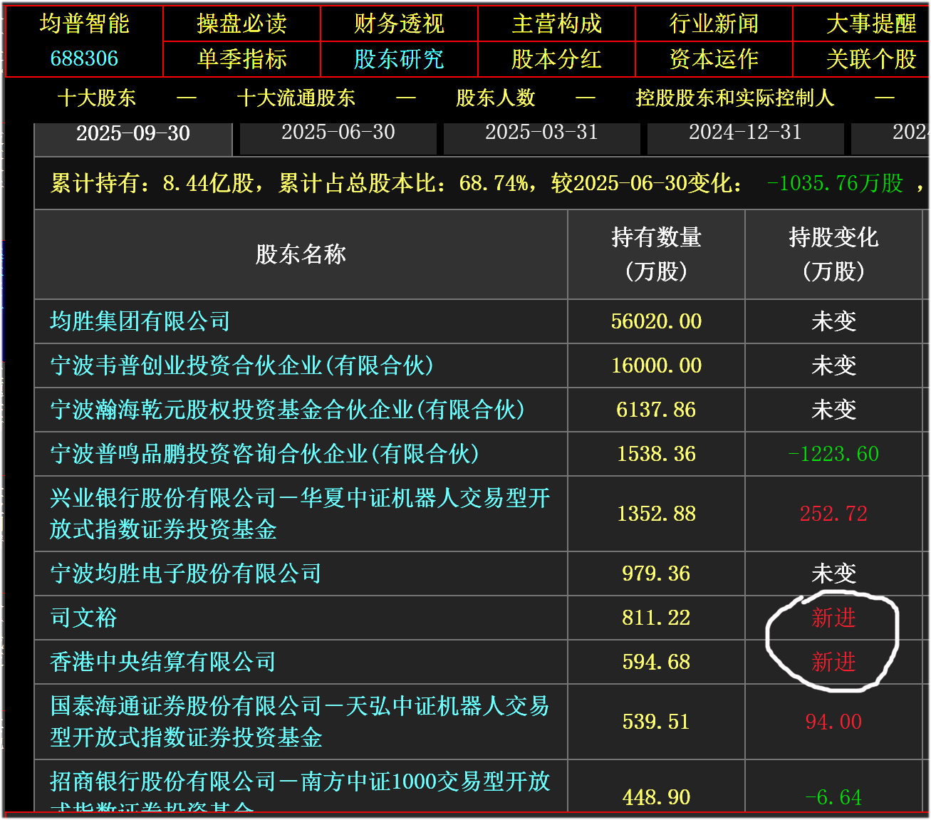 三季报更新前十股东:著名老牌国际财团“香港中央结算有限公司”及牛散司文裕进入十大股东。