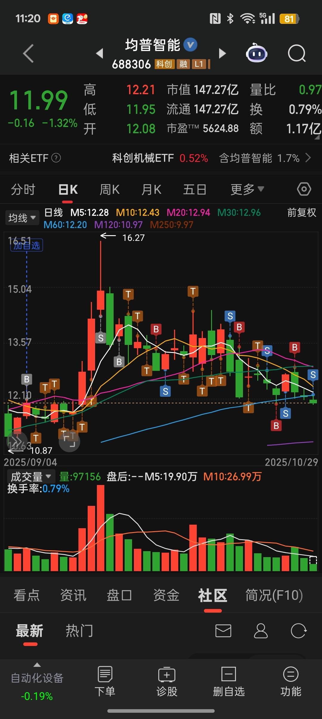 $均普智能(SH688306)$ 你要的筹码给你!16块多我都没有走!短期看不到希望!丁定增落地落地再来!没有底线